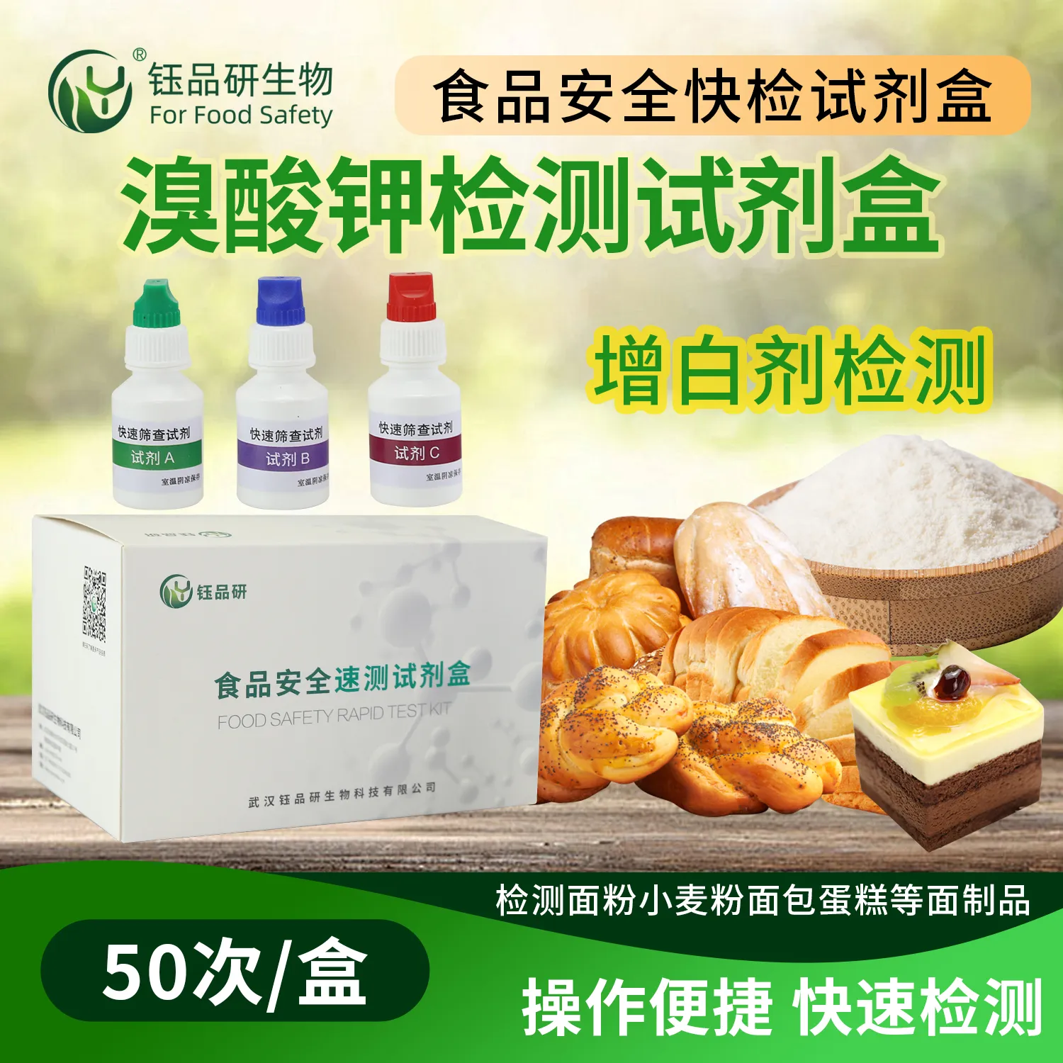 武汉钰品研生物推出面制品中溴酸钾速测试剂盒,基于溴酸钾在特定条件下与检测试剂发生专属化学反应,产生可观测特征现象(如颜色改变、沉淀生成等)的原理,能快速精准检测面制品中是否含有溴酸钾及含量是否超标。操作简便,无需复杂专业设备,普通人员依照详细易懂的操作指南,短时间内即可完成检测,通过观察反应后的直观现象判读结果。溴酸钾曾被用于改善面团性质,但因其具有致癌性和肾毒性,我国自 2005 年 7 月 1 日起已禁止在面制品中使用,溴酸盐不得检出。然而市场上仍可能存在违规添加的情况,长期食用含溴酸钾的面制品会严重危害人体健康。该试剂盒适用于面制品生产加工企业质量把控、市场监管部门抽检、农贸市场快检、超市进货查验,以及家庭日常购买面制品时自查等场景。咨询热线 13720286360,武汉钰品研生物助力您精准识别面制品中溴酸钾问题,全力守护饮食安全与健康。...