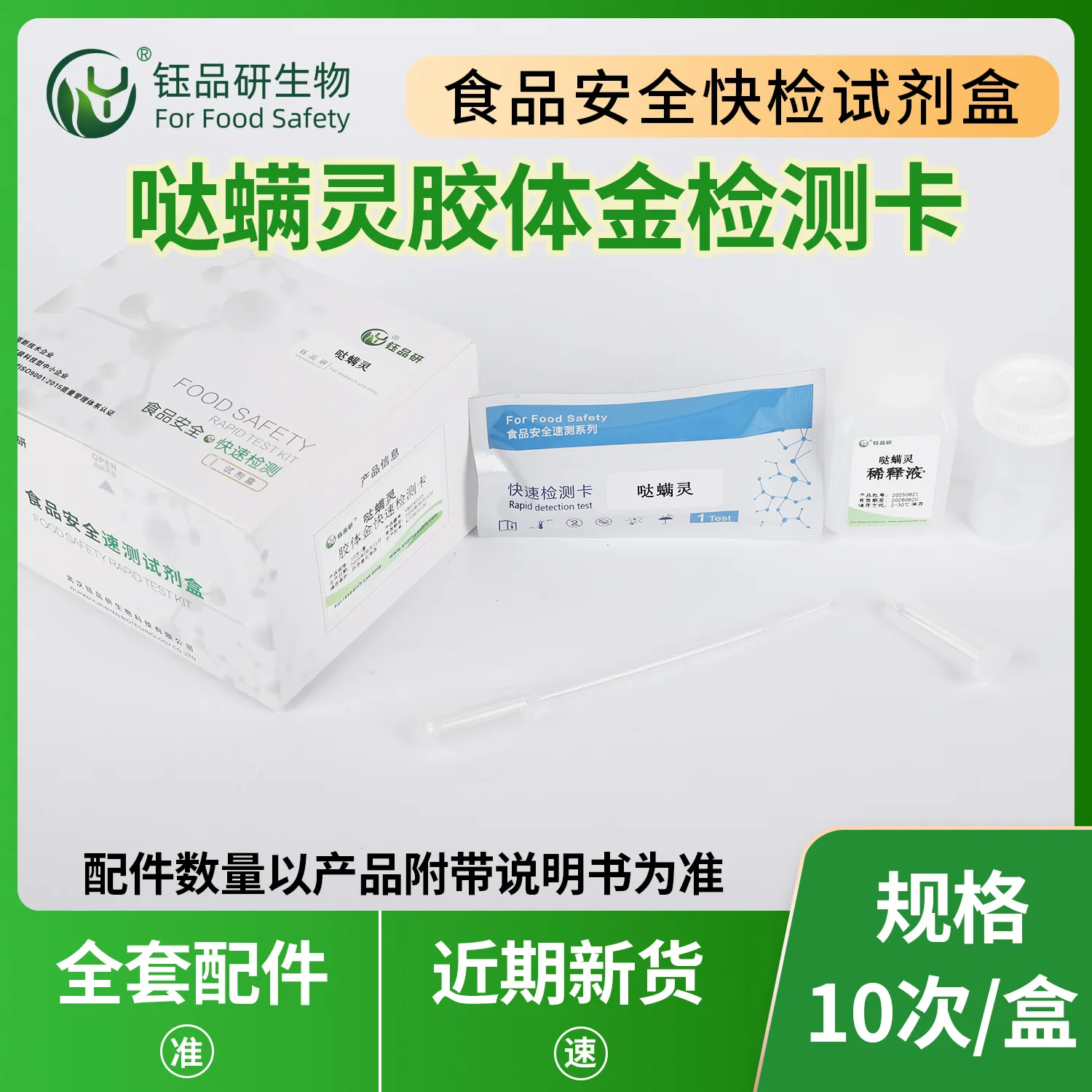 哒螨灵胶体金快检卡,运用竞争抑制免疫层析技术。检测微孔预冻干金标抗体,硝酸纤维素膜 T 线包被哒螨灵抗原,C 线包被羊抗鼠 IgG 二抗。样本中的哒螨灵与金标抗体结合,抑制其与 T 线抗原结合,10 分钟内借 T 线颜色判断残留。操作简单,处理蔬果样本后滴加试剂即可,无需专业设备。哒螨灵作为常用杀螨剂,若使用不当致残留超标,会对人体健康产生潜在威胁。适用于种植、加工企业自检及监管抽检。咨询 13720286360,武汉钰品研生物。...