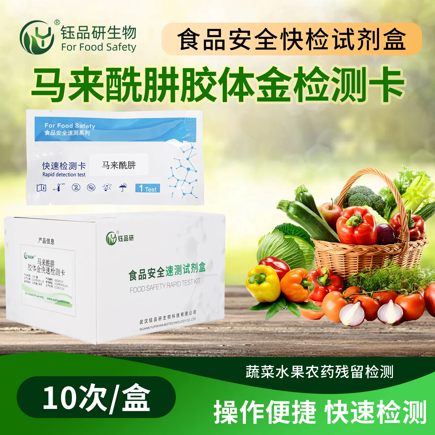 马来酰肼胶体金快检卡,基于竞争抑制免疫层析技术。检测微孔预冻干金标抗体,硝酸纤维素膜 T 线包被马来酰肼抗原,C 线包被羊抗鼠 IgG 二抗。样本中马来酰肼与金标抗体结合,抑制其与 T 线抗原结合,10 分钟内借 T 线颜色判断残留。操作简便,处理蔬果、粮食作物等样本后滴加试剂即可,无需专业设备。马来酰肼作为植物生长调节剂,若使用不当致残留超标,会对人体健康产生潜在威胁。适用于种植、加工企业自检及监管抽检。咨询 13720286360,武汉钰品研生物。...