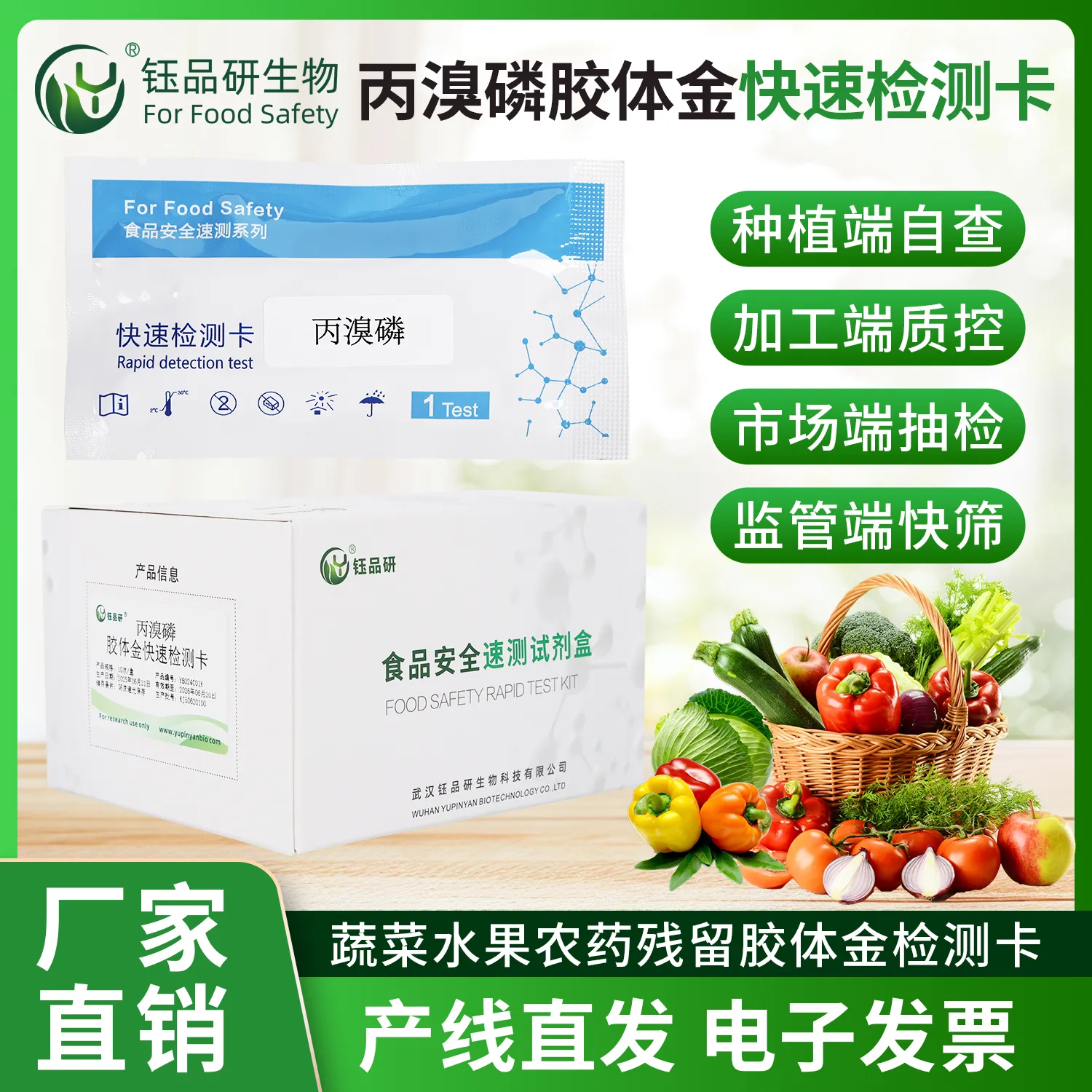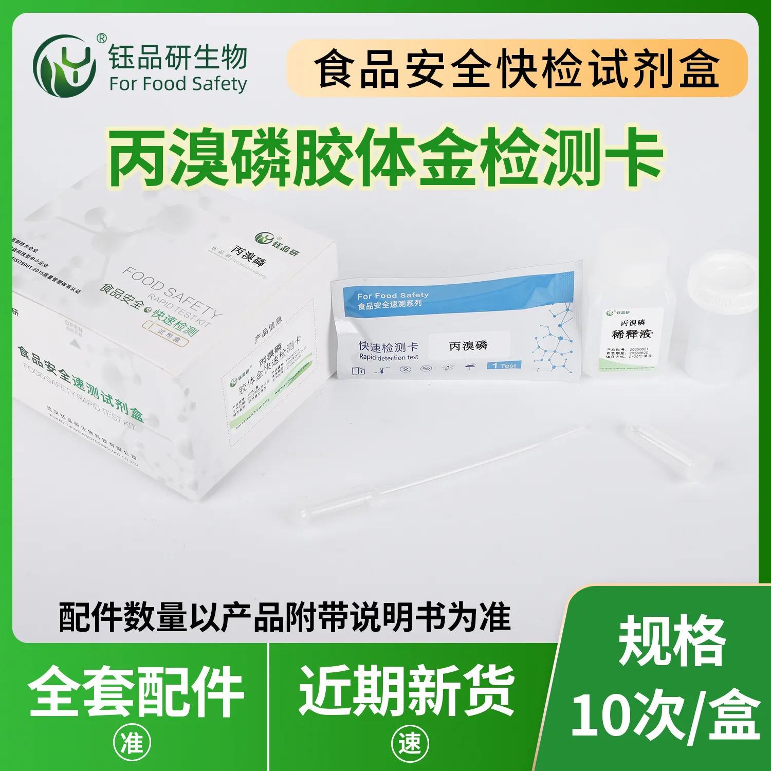 丙溴磷胶体金快检卡,基于竞争抑制免疫层析技术。检测微孔预冻干金标抗体,硝酸纤维素膜 T 线包被丙溴磷抗原,C 线包被羊抗鼠 IgG 二抗。样本中丙溴磷与金标抗体结合,抑制其与 T 线抗原结合,10 分钟内借 T 线颜色判断残留。操作便捷,处理蔬果样本后滴加试剂即可,无需专业设备。丙溴磷属有机磷杀虫剂,残留超标会抑制胆碱酯酶,影响神经,危害健康。适用于种植、加工企业自检及监管抽检。咨询 13720286360,武汉钰品研生物。...