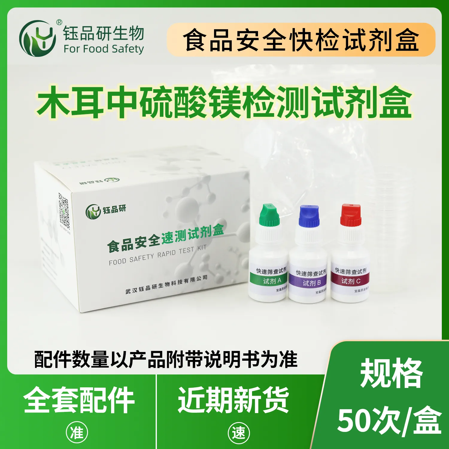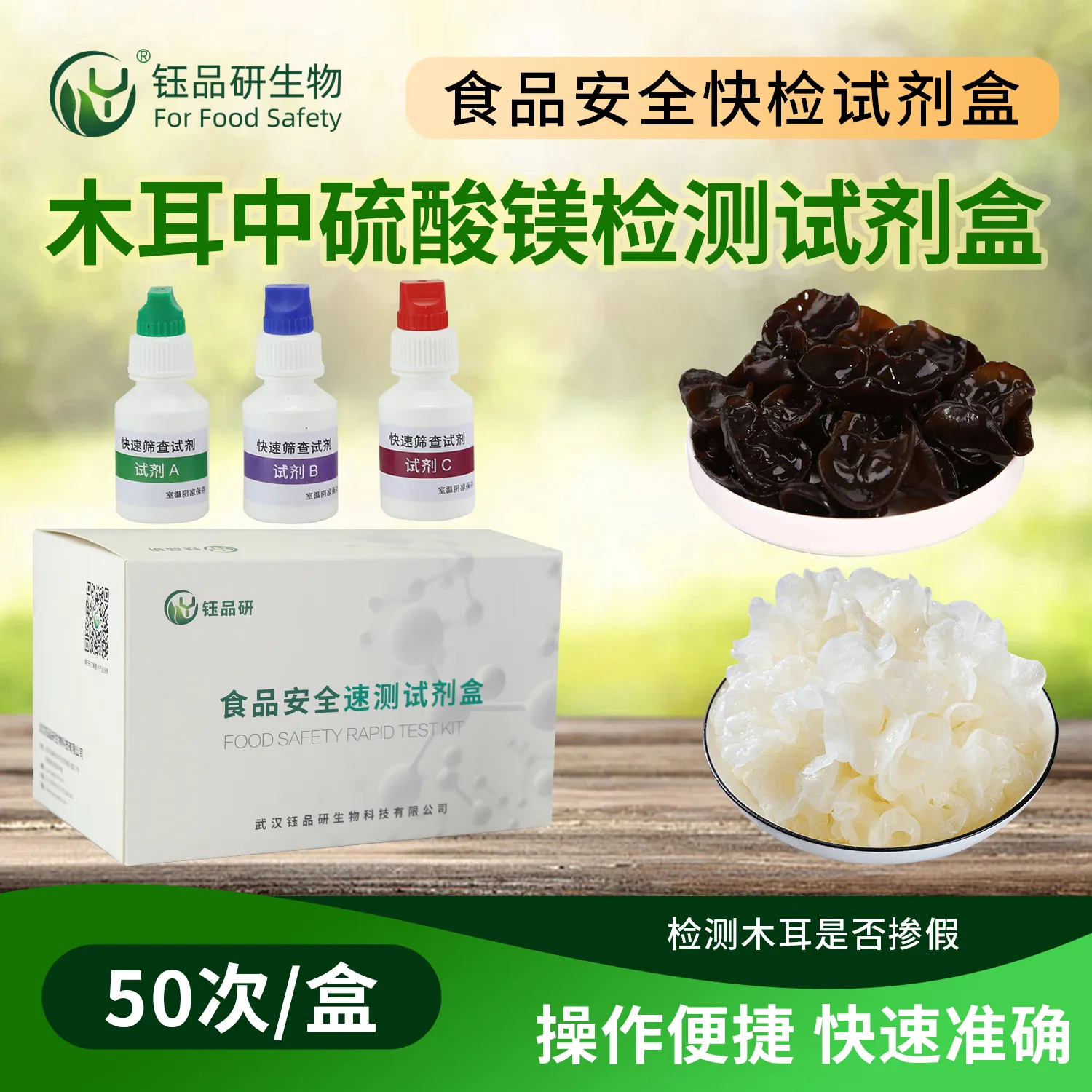 武汉钰品研生物推出木耳中硫酸镁速测试剂盒,基于硫酸镁中硫酸根离子与特定试剂发生专属化学反应的原理,能快速精准检测木耳中是否含有硫酸镁及含量是否超标。操作简便,无需复杂专业设备,普通人员依照详细易懂的操作指南,短时间内即可完成检测,通过溶液产生沉淀或颜色变化等直观方式判读结果。部分商家为增加木耳重量、改善外观而违规添加硫酸镁,长期食用会危害人体健康。该试剂盒适用于木耳生产加工企业质量把控、市场监管部门抽检、农贸市场快检、超市进货查验,以及家庭购买木耳时自查是否含硫酸镁等场景。咨询热线 13720286360,武汉钰品研生物助力您精准检测木耳品质,守护饮食安全与健康。...