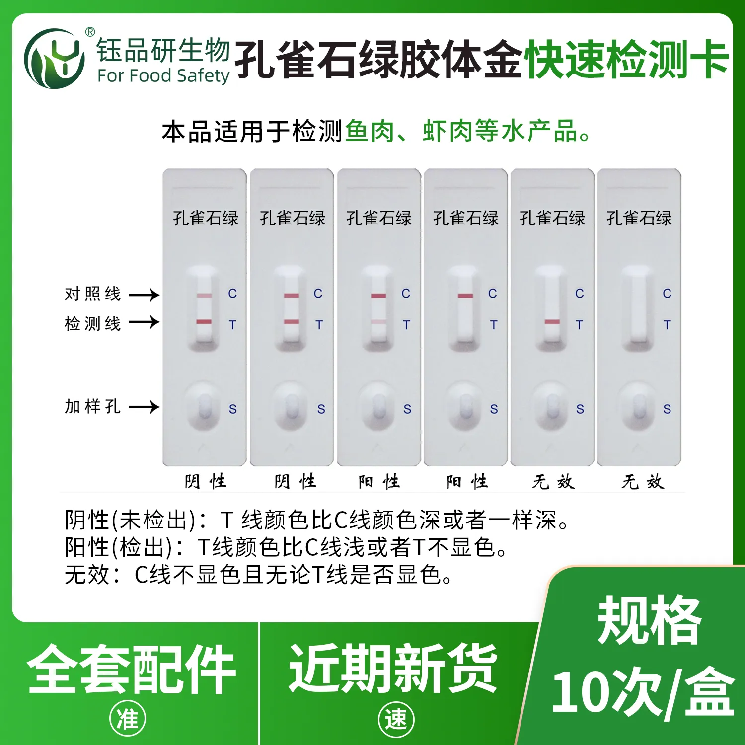 武汉钰品研生物孔雀石绿胶体金快检卡,基于竞争抑制免疫层析技术。样本中的孔雀石绿与胶体金标记的特异性抗体结合,抑制抗体与检测线(T 线)上的孔雀石绿-BSA 偶联物结合,借 T 线颜色变化,10 分钟内快速判断残留情况。操作简便,无需专业设备,简单处理样本后滴加试剂即可。孔雀石绿是有毒三苯甲烷类化学物,曾用于水产杀菌,但其具有高毒性、高残留性和致癌性,我国已明令禁止在水产养殖中使用。适用于水产品企业自检、市场监管抽检及农贸市场快检等场景。咨询 13720286360,守护饮食安全。...