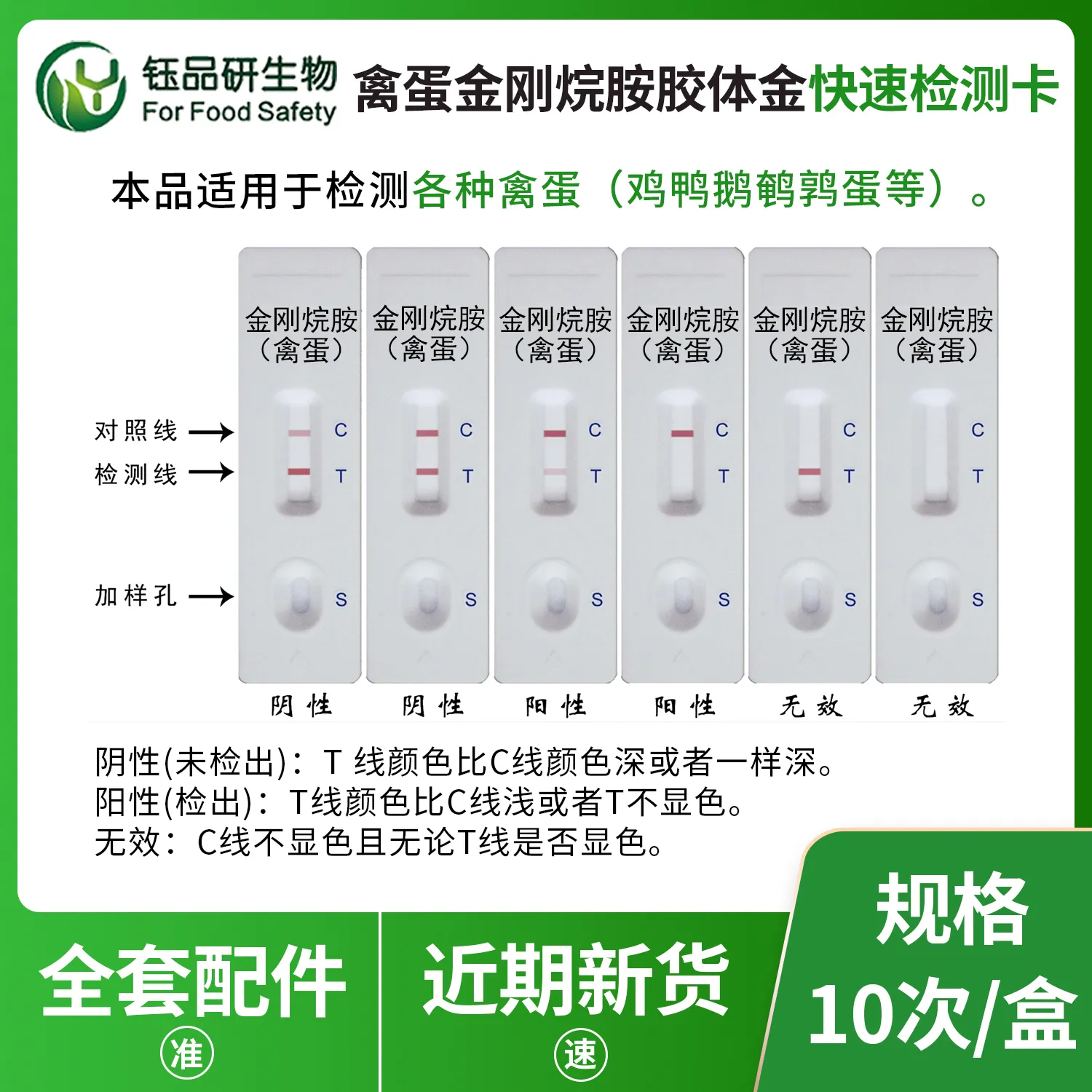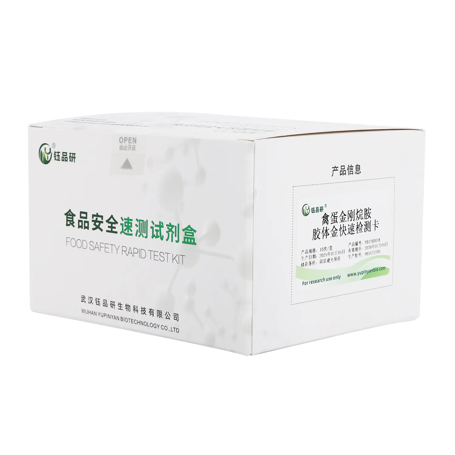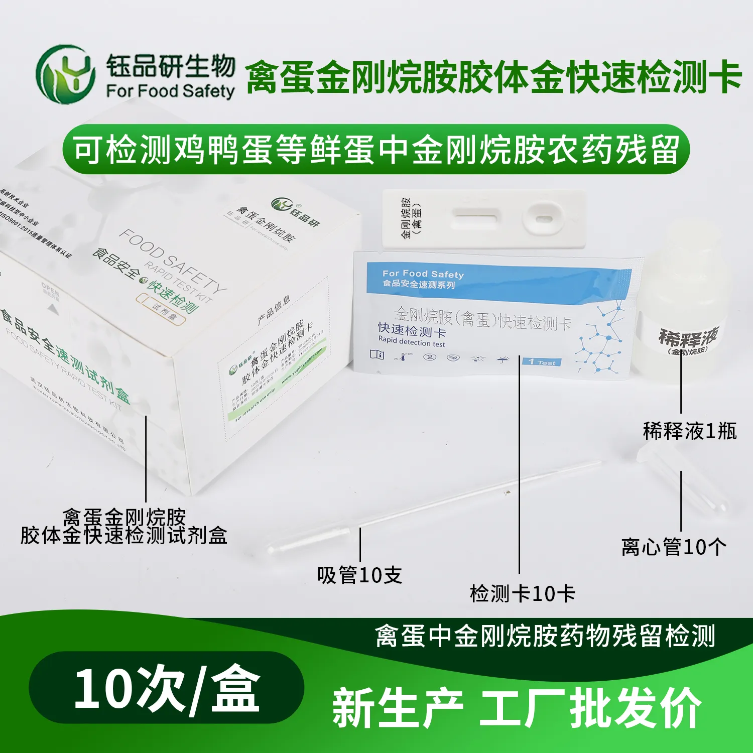 禽蛋金刚烷胺胶体金快检卡,依托竞争抑制免疫层析原理。检测微孔内预冻干金标金刚烷胺抗体,硝酸纤维素膜 T 线包被金刚烷胺抗原,C 线包被羊抗鼠 IgG 二抗。禽蛋样本经简单处理后滴加试剂,样本中的金刚烷胺会与金标抗体结合,抑制其与 T 线抗原结合,10 分钟内依据 T 线颜色便能判断禽蛋中的金刚烷胺残留情况。金刚烷胺属抗病毒药,违规用于蛋禽养殖会引发食品安全隐患,人体若摄入金刚烷胺残留超标的禽蛋,可能出现头晕、恶心、精神混乱等症状。适用于禽蛋养殖、加工企业自检及监管部门抽检。咨询 13720286360,武汉钰品研生物。...
