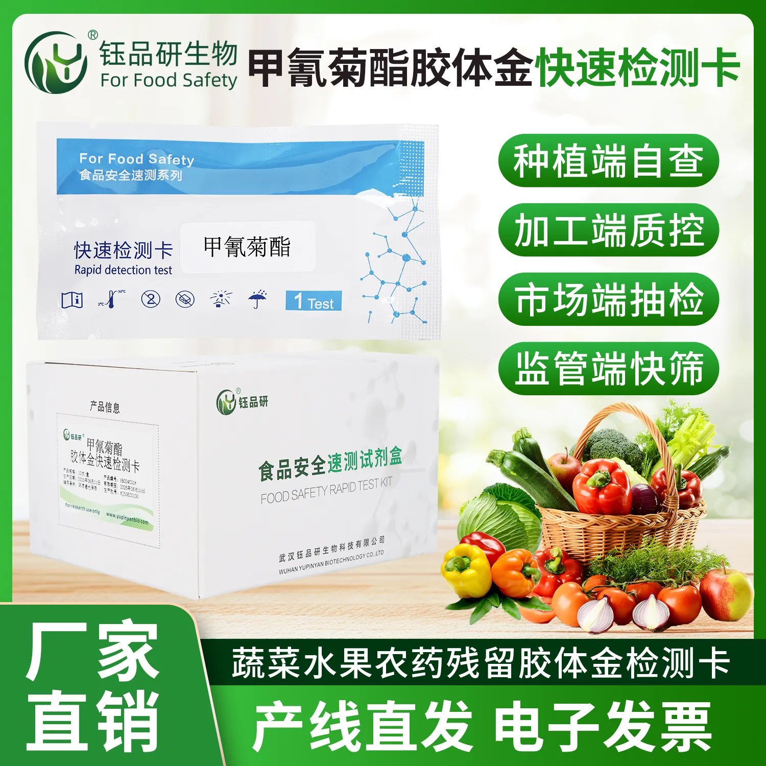 武汉钰品研生物作为专业厂家,推出甲氰菊酯胶体金快速检测卡,是可靠的食品安全检测快检试剂。该检测卡基于竞争抑制免疫层析原理,胶体金标记的特异性抗体与样本中甲氰菊酯竞争结合,通过检测线显色判断结果。操作简便,无需复杂设备,10-15 分钟出结果,精准检测相关样本中该农药残留。适用于农产品检测、监管抽检等场景,咨询热线 13720286360,为食品安全检测提供有力支持。...