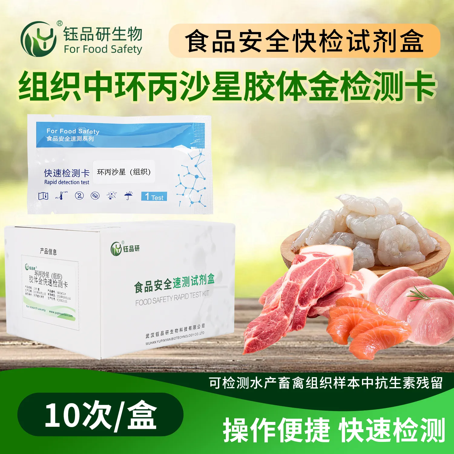 环丙沙星胶体金快检卡,基于竞争抑制免疫层析原理。检测微孔预冻干金标环丙沙星抗体,硝酸纤维素膜 T 线包被环丙沙星抗原,C 线包被羊抗鼠 IgG 二抗。简单处理畜禽肉、禽蛋、水产等样本后滴加试剂,样本中环丙沙星与金标抗体结合,抑制其与 T 线抗原结合,5 - 10 分钟借 T 线颜色判断残留。环丙沙星属氟喹诺酮类抗生素,残留超标会引发人体胃肠道不适、头痛头晕、过敏反应,长期摄入甚至影响儿童软骨发育。适用于养殖、加工企业自检及监管部门抽检。咨询 13720286360,武汉钰品研生物。...