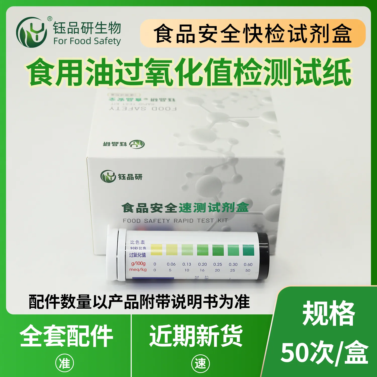 食用油中的过氧化物与显色剂在一定条件下反应生成橙红色产物,溶液颜色深浅与过氧化物含量成正比,使用配套食品安全检测仪可以测定样品中过氧化值的含量。