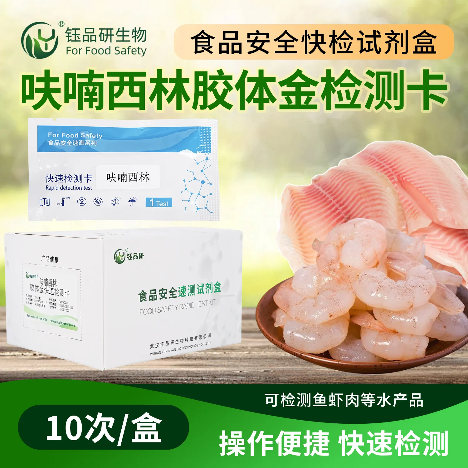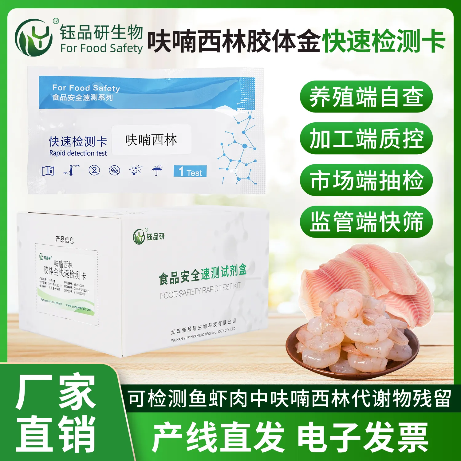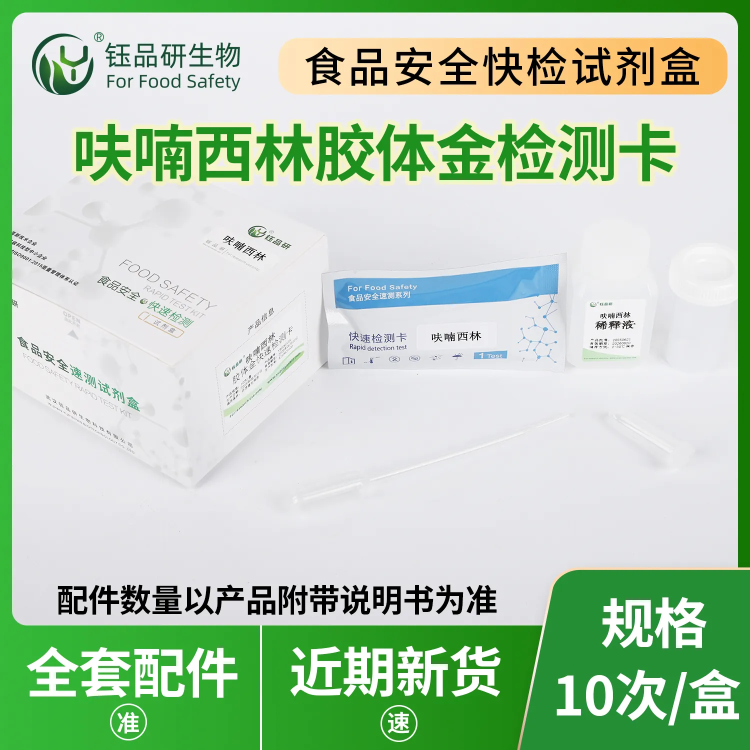 武汉钰品研生物呋喃西林代谢物胶体金快检卡,基于竞争抑制免疫层析技术,样本中该代谢物与胶体金标记抗体结合,抑制其与检测线偶联物结合,借 T 线颜色变化,10 分钟内判残留情况。操作简便,无需专业设备,简单处理样本滴加试剂即可。呋喃西林属禁用兽药,其代谢物残留具致癌性,危害人体健康。适用于水产、禽肉企业自检、监管抽检、农贸市场快检。咨询 13720286360,守护饮食安全。...